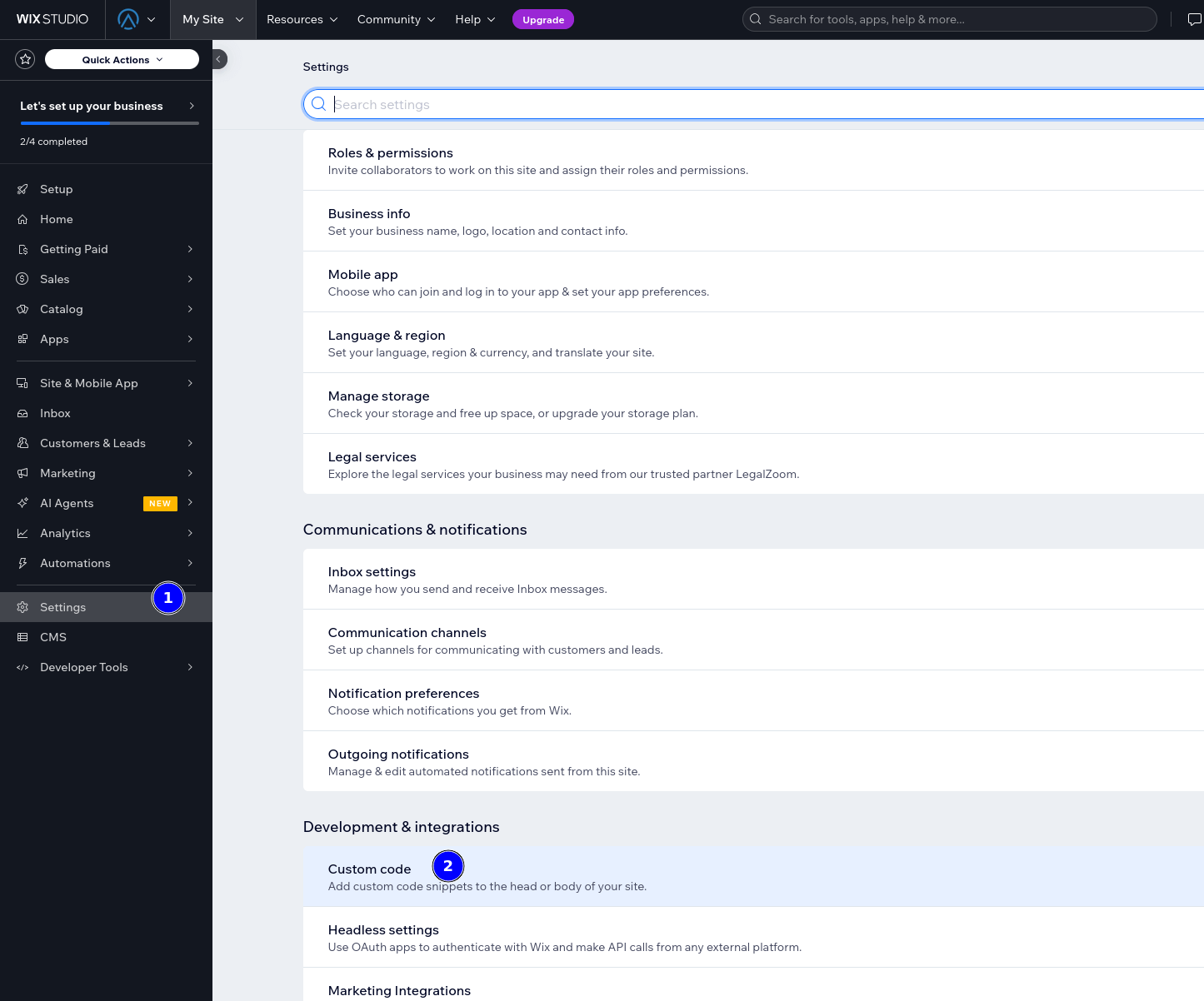 - In your Wix Admin Panel, go to Settings